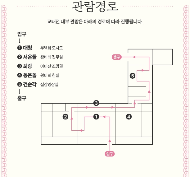 - 왕비의 생활상 재현 전시: 대청, 온돌방, 회랑 등을 통해 조선시대 왕비의 일상을 체험할 수 있습니다.