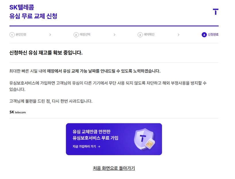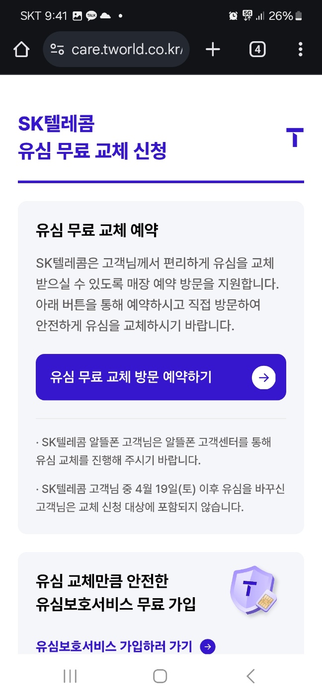 - 유심을 교체 후에 꼭 유심보호서비 가입(무료)을 추천드립니다.